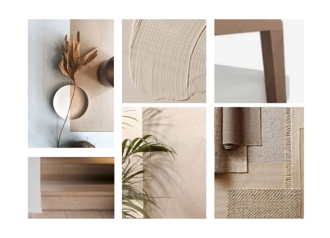 Dit moodboard heb ik zelf samengesteld. De sfeer die ik wilde creëren is zacht en elegant, met een moderne touch. Omdat ik zelf veel van natuurlijke kleuren houd, vond ik deze kleuren dan ook passend bij de stijl die ik wilde uitdrukken.
