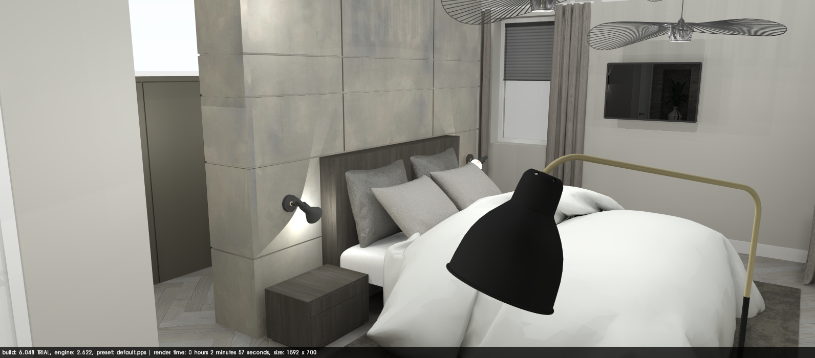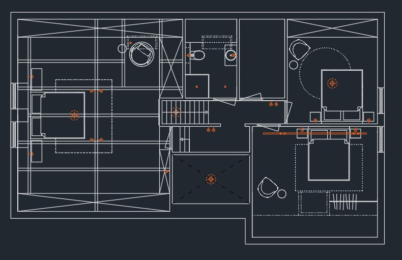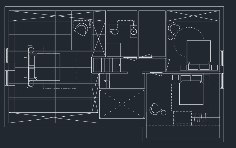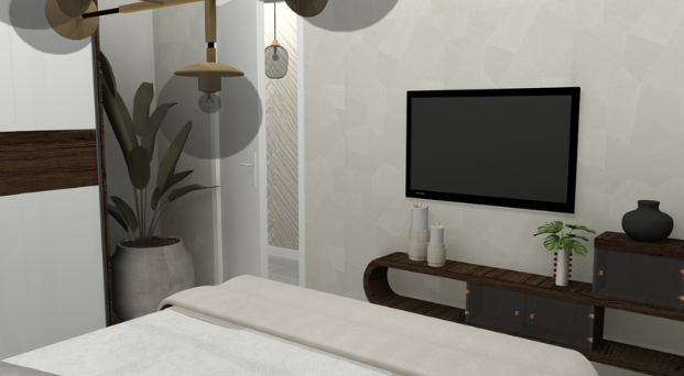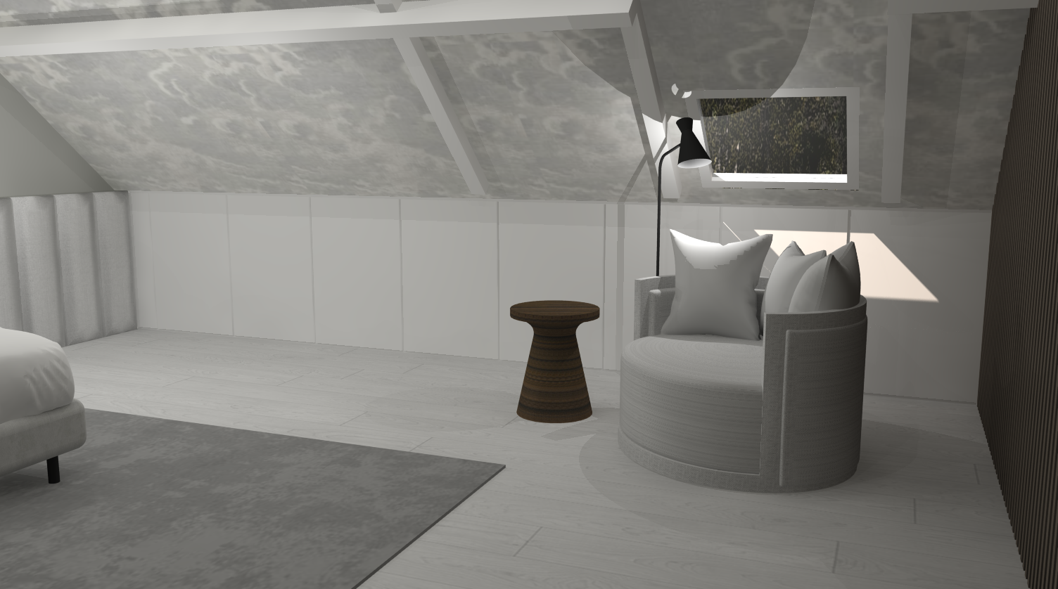 Voor dit project hebben we een gedetailleerde indeling gemaakt in AutoCAD. Daarnaast is er een lichtplan ontworpen, eveneens uitgewerkt in AutoCAD. De visualisatie van de slaapkamer is gemaakt met behulp van het 3D-programma SketchUp.