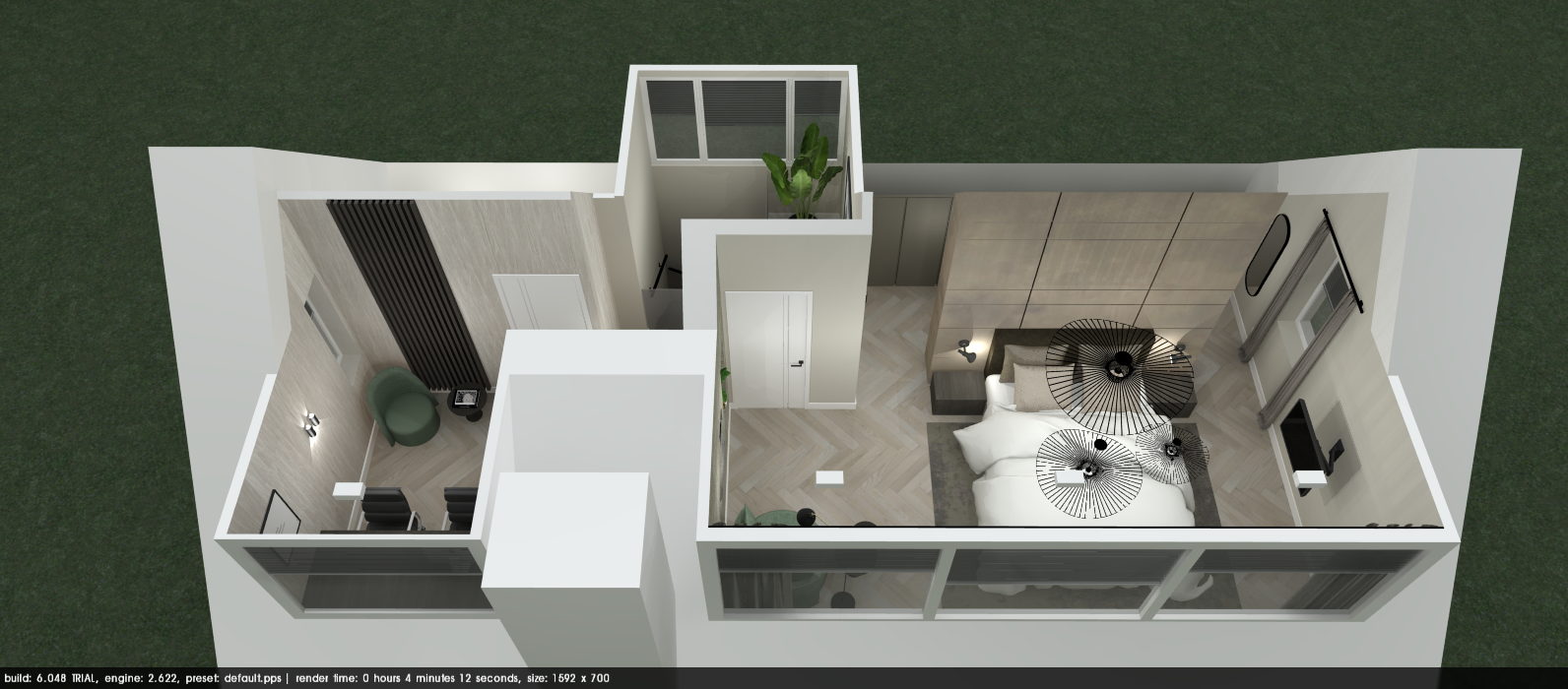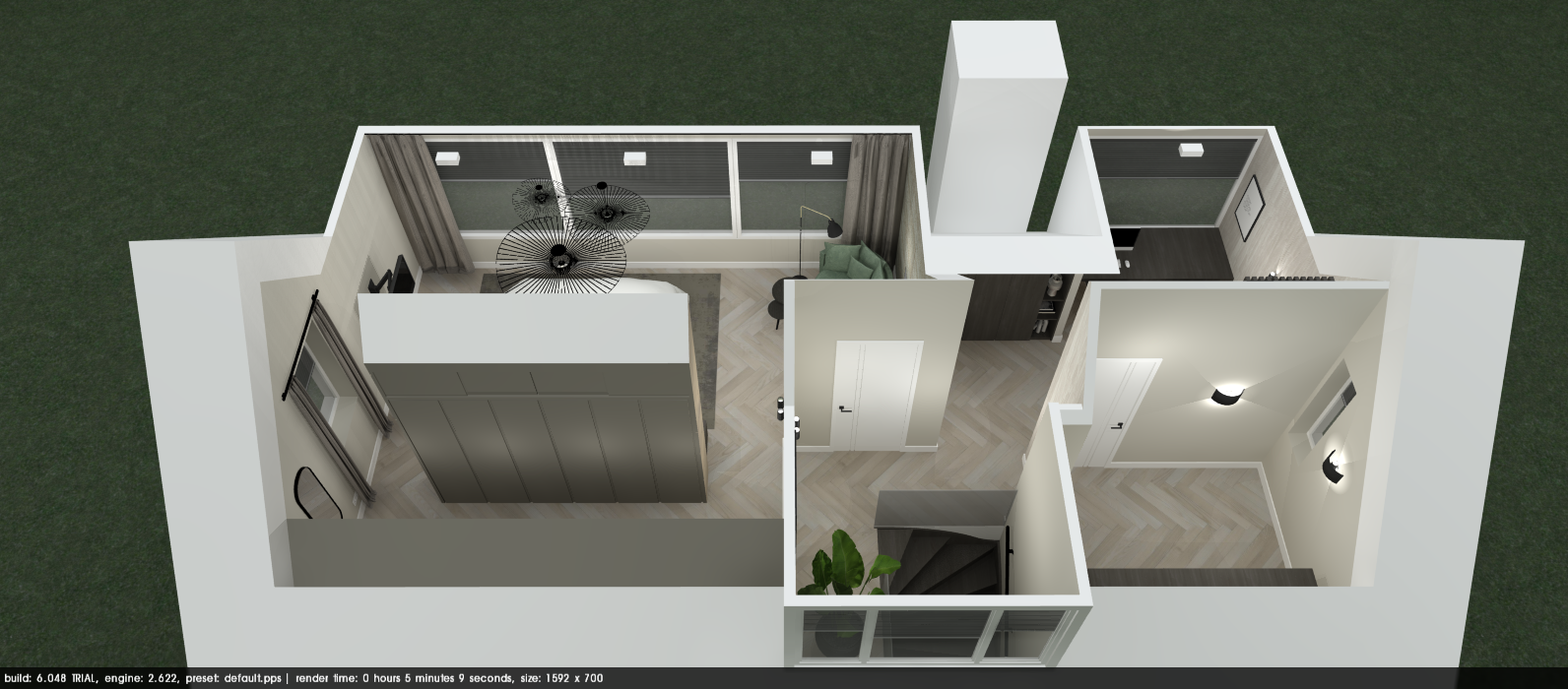 Wanneer het ontwerp compleet is, start ik met het renderen van de afbeeldingen. Hiervoor gebruik ik Podium SU om mijn SketchUp-ontwerpen zo realistisch mogelijk te presenteren.
