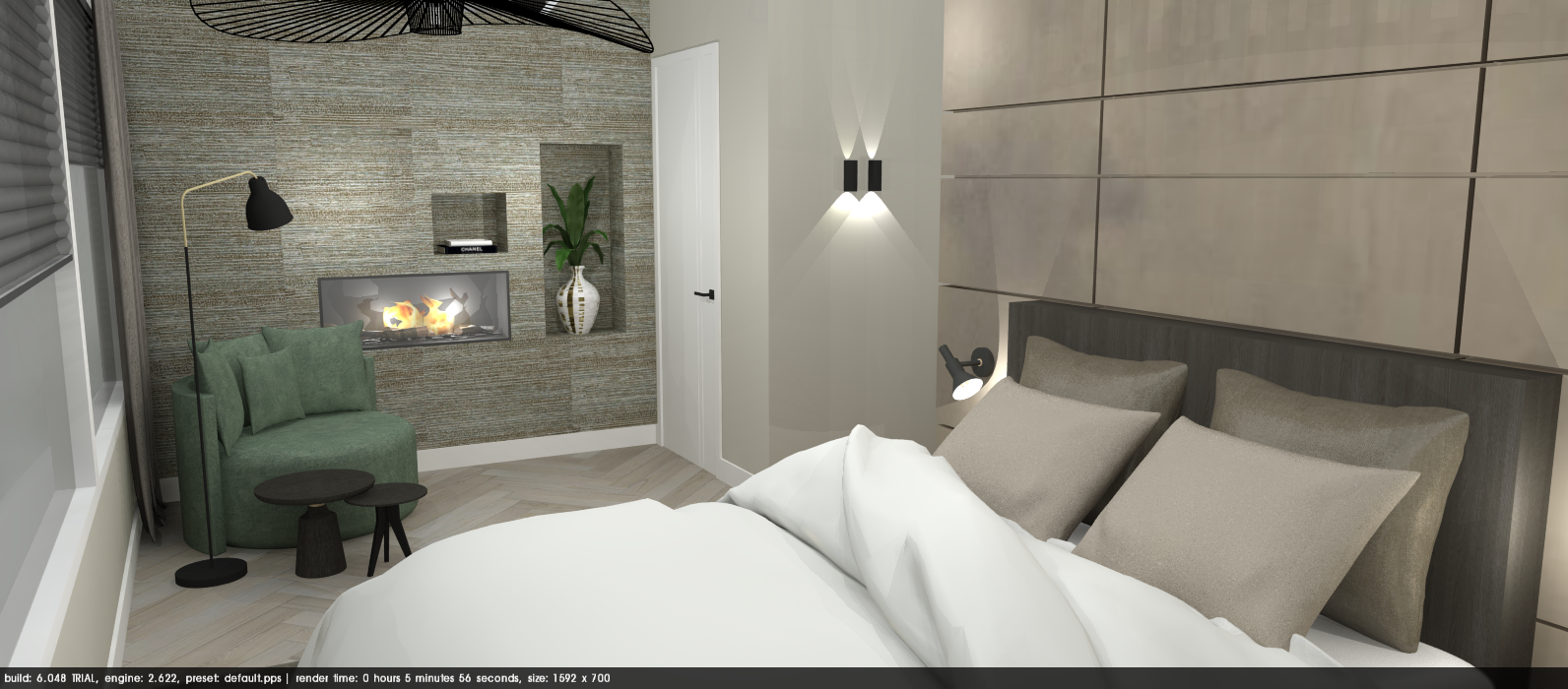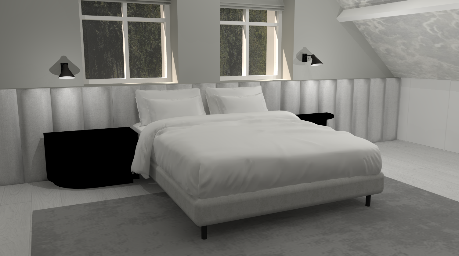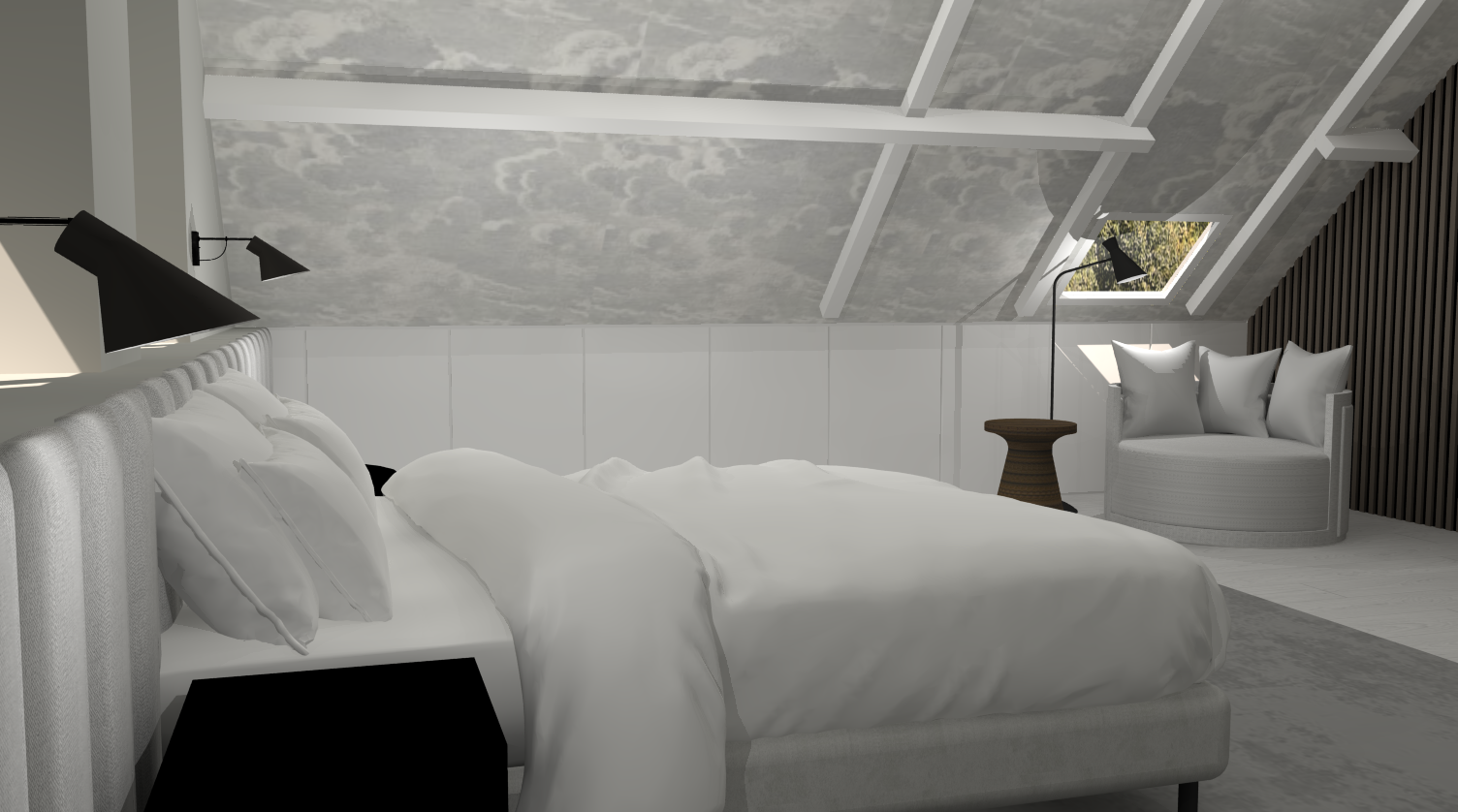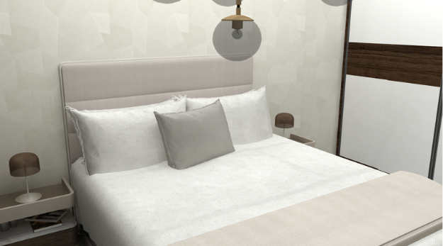 Tijdens mijn stage heb ik dit project uitgevoerd voor een klant die hun slaapkamer wilde vernieuwen met een frisse, moderne en vooral rustige inrichting.