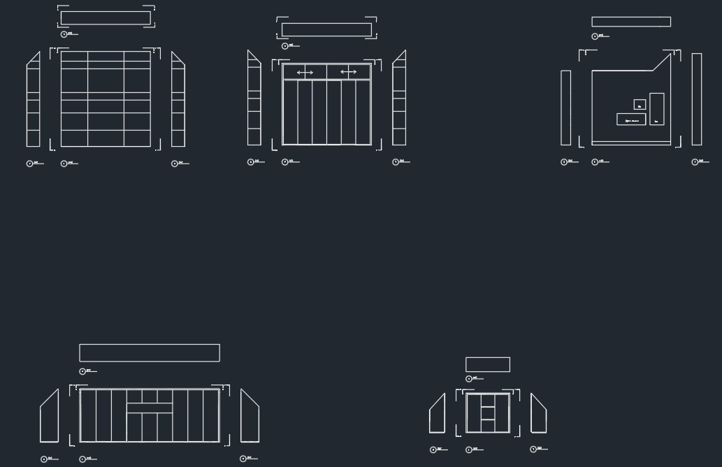 Voor het ontwerpen van maatwerkkasten maken wij gebruik van AutoCAD. Hierbij worden verschillende aanzichten van de kasten uitgewerkt, inclusief de bijbehorende afmetingen, zodat er een duidelijk overzicht is van het ontwerp. Tevens maken we vooraf een indeling in AutoCAD om de praktische haalbaarheid en plaatsing van de elementen te waarborgen.